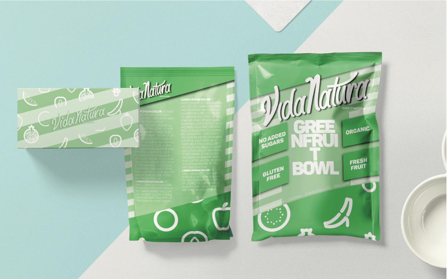 brand identity for a smoothie bowl company based in Dubai, the brief included the keywords modern, sporty, and classy. deliverables included bags, delivery boxes, bowls, cups, stickers, and color palettes.